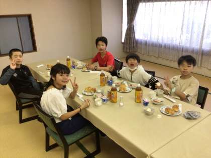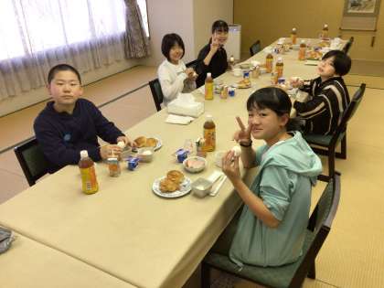 みんな少し眠そうですが、しっかり朝ごはんを食べました。今日はたくさん歩きますが、頑張ります。