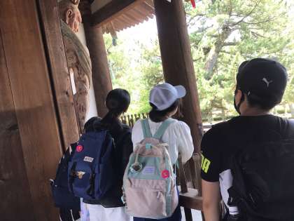 最後の見学場所「法隆寺」をみんなで見学しました。日本最初の世界文化遺産を見て歴史を感じました。