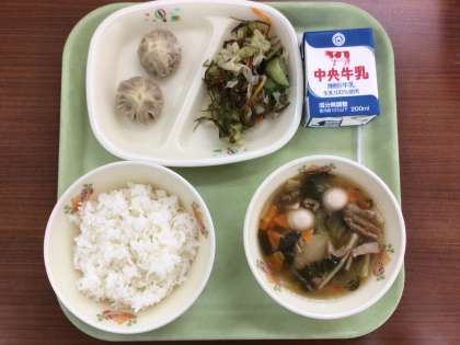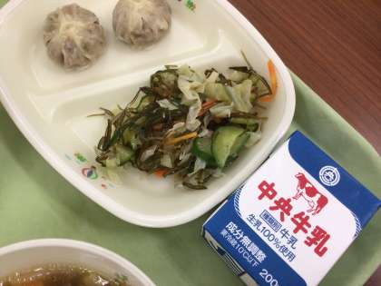 ごはん ショウロンポウ 糸こんぶの中華サラダ ワンタンスープ