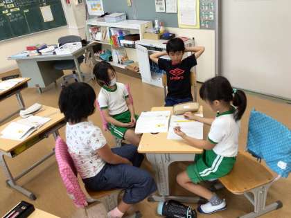 国語「いろんなおとのあめ」のおもしろいと思ったところをグループで考え発表しました。