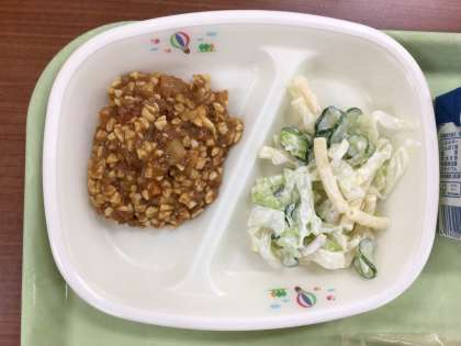 今日はアメリカの郷土料理であるスラッピージョーです。トマトケチャップとソースで味を付け、パンによく合うように作っています。口の周りを汚さず食べてほしいと思います。