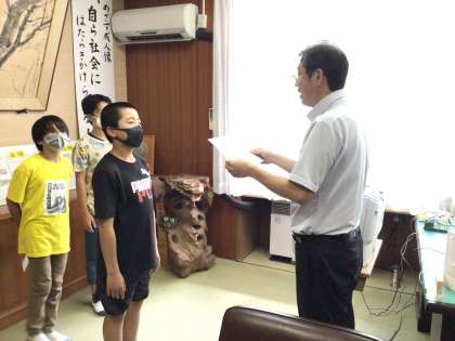 6年生の3名の子ども達にいなほ銀賞を渡しました。月例テストや運動会等の行事での頑張りがいなほ銀賞につながりました。
