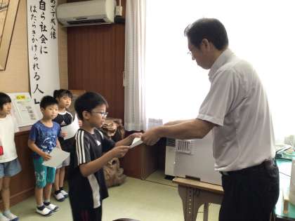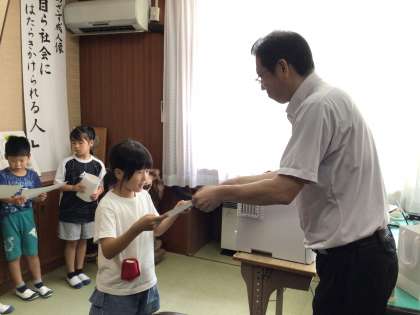 2年生の6名のこどもたちにいなほ銀賞を渡しました。夏休みの課題や整理整頓などの頑張りがいなほ銀賞につながりました。
