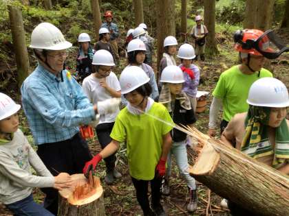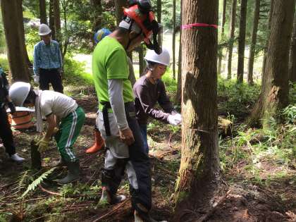 長さ28メートルもある大きな木を伐採しました。倒れる時は、すごい迫力でした。
