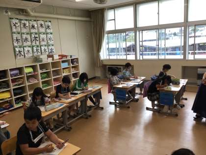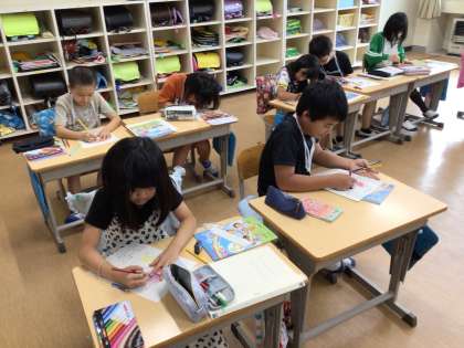 色についての英語を学びました。色鉛筆で色を作ったり、好きな色を英語で書いたりしました。