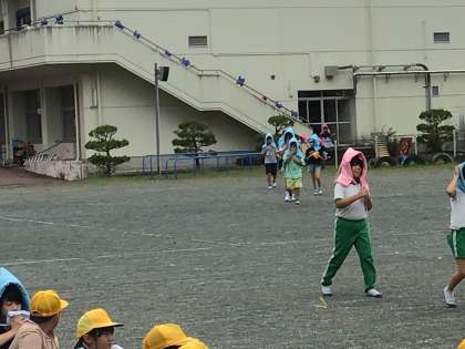 地震を想定した避難訓練をしました。今回は、授業中ではなく、放課に地震がくるというケースで行いました。子ども達は真剣に避難することができました。