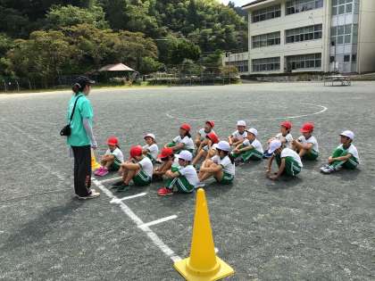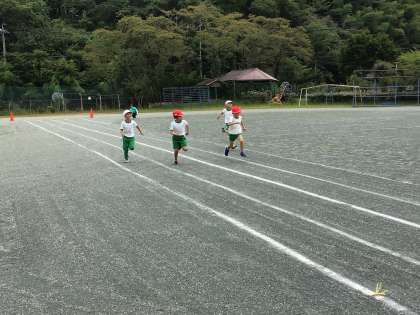 運動会に向けて、徒競走や入退場の練習をしました。みんな一生懸命走りました。