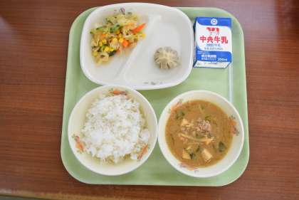 今日は中華献立です。パオズは漢字では「包子」と書きます。日本でいうと中華まんのようなものを差し、小麦粉でできた生地に様々な材料を包みます。中国の伝統的な料理です。