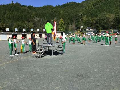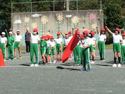 運動会の開閉会式の練習をしました。赤白団長の掛け声が運動場に響き渡りました。