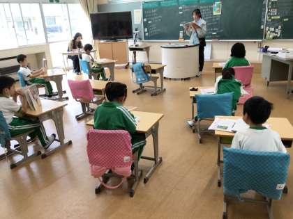 道徳「お月さまとコロ」のお話を読んで、素直な心について学びました。素直にあやまる、あやまらないなど題材を使って考えることができました。