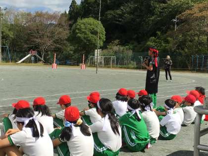 赤白応援合戦をお互いに見合いました。そして、お互いによかった点、修正した方がよい点について伝え合いました。