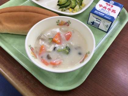 最近どんどん寒い日が多くなりました。今日は寒い日にぴったりのクリームシチューです。にんじんのオレンジ色とブロッコリーの緑色で、色味も鮮やかに作ることができました。