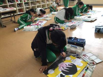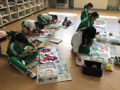 「ソメコとオニ」または「耳の聞こえないメジャーリーガー」の本の読書感想画を描きました。子ども達の思いが絵に表れていました。
