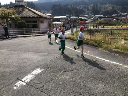 中学年の子ども達からマラソン大会はスタートしました。2周半約1500mを頑張って走りました。