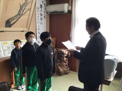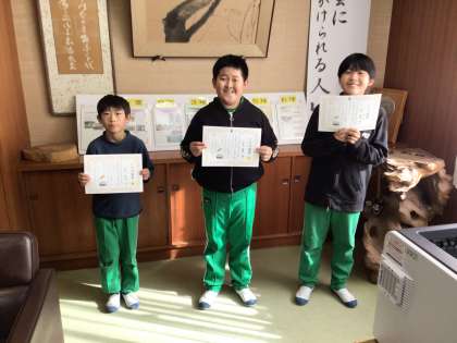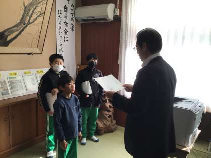 5年生の3名の子ども達にいなほ銀賞を渡しました。委員会活動や月例テストなどを頑張ったことがいなほ銀賞につながりました。