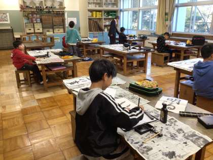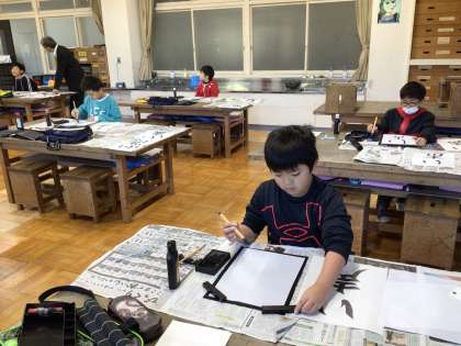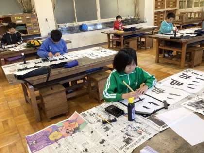 「い声」と字を書きました。バランスよく文字を書く難しさを感じながら、うまく書けるように繰り返し練習しました。