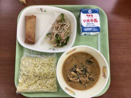 豆乳坦々麺 春巻き もやしのナムル