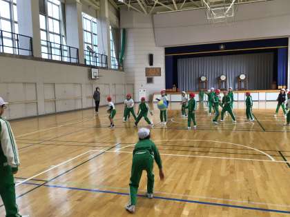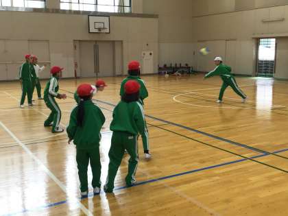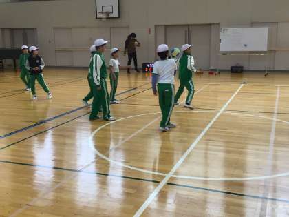 赤白のチームにわかれて、ドッジボールをしました。利き手ではない手で投げたり、バウンドして当てるルールにしたり、色々なルールのドッジボールを楽しみました。