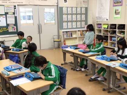 「たっきゅうは4人まで」の話を聞いて、友達と仲良く過ごすにはどうしたらよいのか、話し合いました。