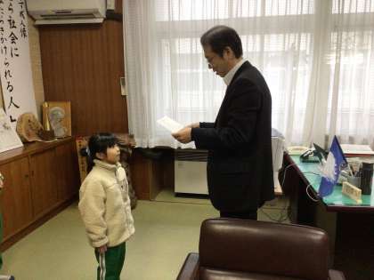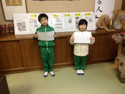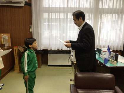 1年生の子ども達にいなほ銀賞を渡しました。野菜を頑張って育てたことやマラソン大会に向けて頑張ったことがいなほ銀賞につながりました。