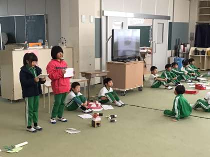 お蚕さんの育て方について、自分達が学んだことを1年生や保護者の方々に発表しました。