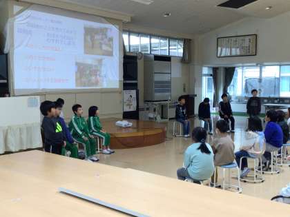 高齢者の方々との交流や福祉について学んだことを、3年生や保護者の方々に発表しました。