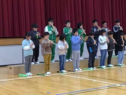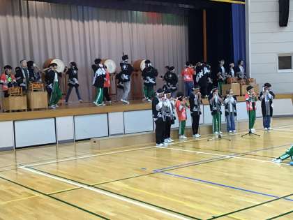 稲武太鼓クラブの迫力ある発表や低学年、中学年、高学年の歌などを発表しました。