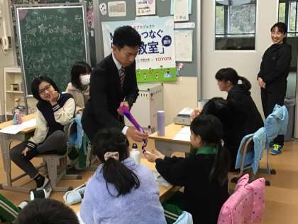 東京パラリンピックの陸上競技でご活躍されたトヨタ自動車所属の石田駆さんを講師にお招きして夢の教室を行いました。一緒に遊んだり、石田さんの歩んできた道のりについての話を聞いたりしました。また、自分の将来の夢について考える機会にすることができました。