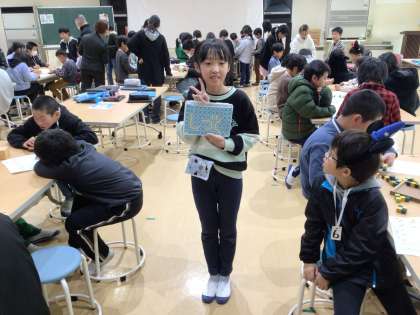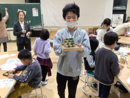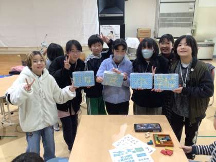 みんなで協力して、「稲武小学校」の文字を積木で完成させることができました。