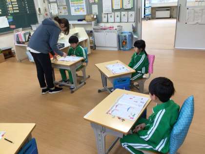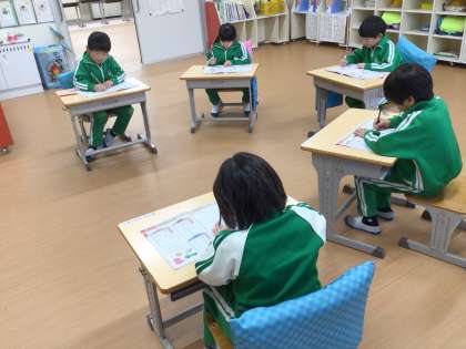 カタカナについての問題を解きました。まだ、しっかりと覚えきれていないカタカナもありましたが、一生懸命に頑張りました。