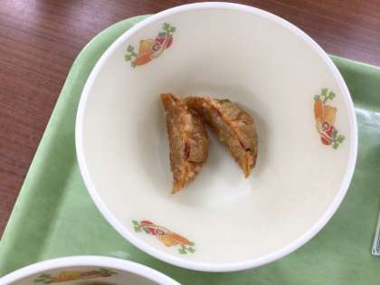 今日の揚げぎょうざには愛知県産の「れんこん」が使用されています。ぎょうざに入っているイメージはありませんが、シャキシャキとした食感が良いアクセントになり、おいしいです。