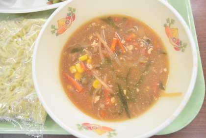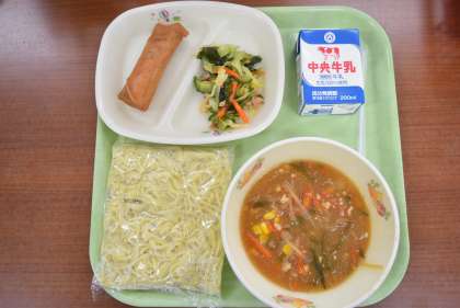 今日はみそラーメンです。にんにくを効かせたスープに片栗粉でとろみをつけたので、麺に絡みやすく、冷めにくいため、最後までおいしく食べることができます。今日も冷えますが、みそラーメンで温まってほしいです。