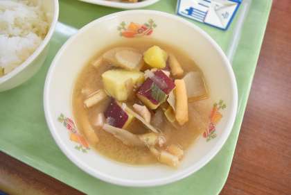 さつま汁とは鶏肉が入った具だくさんのみそ汁で、鹿児島県の郷土料理です。さつま汁という名前は鹿児島県に「薩摩藩」があったことに由来します。栄養たっぷりで体が温まります。