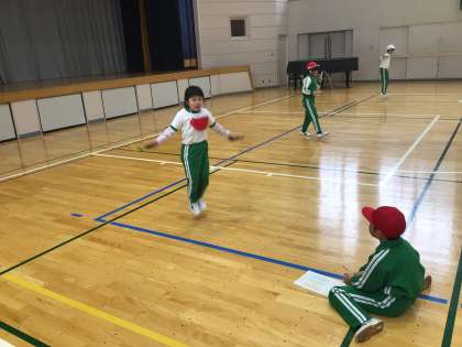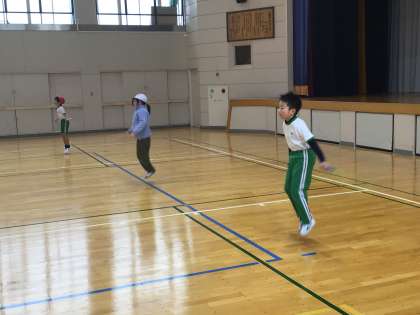 N–1グランプリに向けて、本番と同じように1分間で何回跳ぶことができるかやってみました。子ども達は、自分の目標を達成できるように一生懸命に跳んでいました。