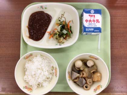 ごはん 肉みそ 白菜の昆布あえ おでん