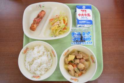 今日の献立は「日本の伝統的な加工品を知ろう」をテーマにたてられました。切り干しだいこんや高野豆腐は食品を長く保存するための工夫がされた食品です。ちくわや紅しょうがも昔から日本で食べられてきました。古来からの文化を大切に受けづいていきたいですね。