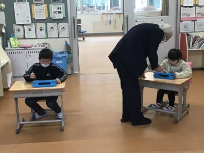 プログラミングについて学びました。自分でプログラムして登場人物を動かしたり、ボールを動かしたりしました。