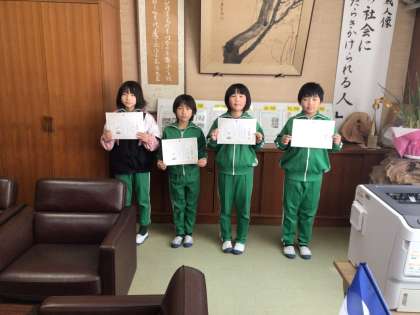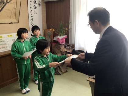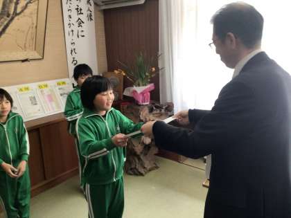 3年生の子ども達にいなほ銀賞を渡しました。授業での発言、清掃活動、月例テストなどを頑張ったことがいなほ銀賞につながりました。