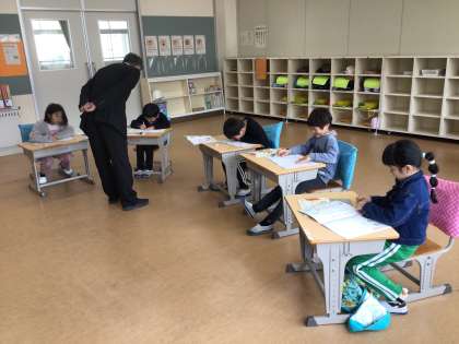 硬筆の練習をしました。「とめ」「はね」「はらい」を意識して、上手に書けるように頑張りました。
