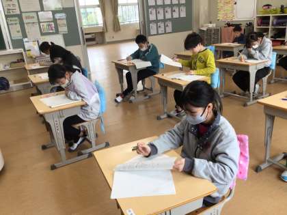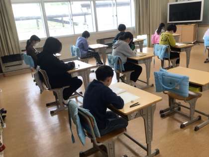 国語と算数の全国学力学習状況調査が行われました。子ども達は真剣に集中して問題を解いていました。