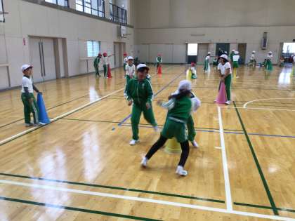 コーンタッチ鬼やボール投げ合戦など、色々な動きを通して身体の使い方を学びました。とても楽しく身体を動かすことができました。