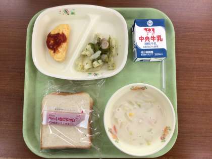 今日は春キャベツのポタージュにしました。春キャベツは葉が柔らかく、甘みがあるのが特徴です。生食にしても美味しく食べることができます。