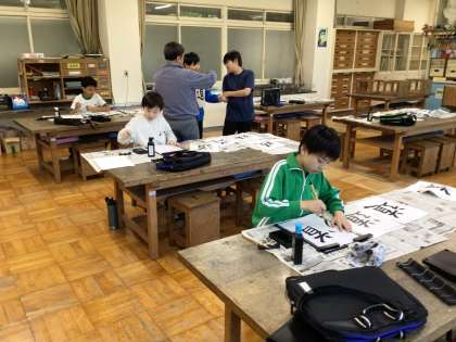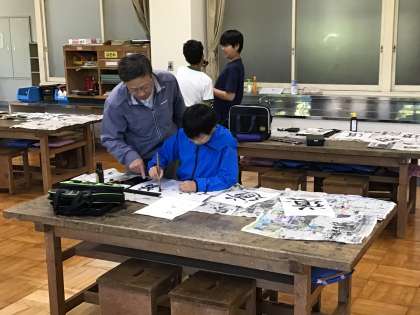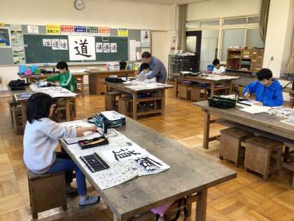 「道」をうまく書けるように練習しました。筆の使い方、力の入れ方など繰り返し練習しました。