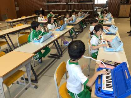 映像を見て踊ったり、鍵盤ハーモニカでいろいろな音を出したりしました。
