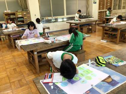 自分の好きなものを画用紙に色鉛筆を使って描きました。剣や動物、星空やユニコーンなど子ども達の好きなものが描かれました。