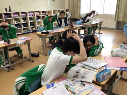 生活に関わる英語について学びました。ALTの先生の英語を聞いて、その内容について教科書で探すゲームをしました。