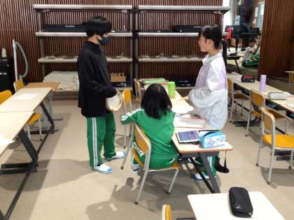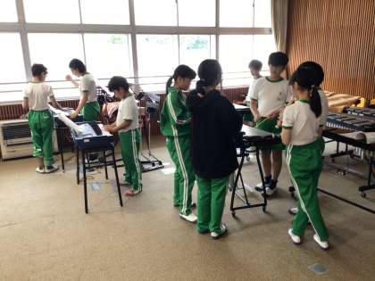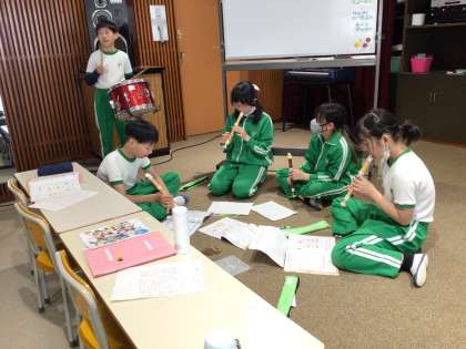 「リボンのおどり」をグループで演奏できるように練習しました。いろいろな楽器の音の重なり合う響きを楽しんでいます。