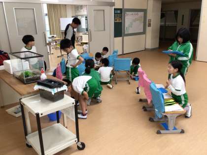 「シュレーゲルアオガエル」の観察をしました。写真を撮ったり、様子をまとめたりしました。