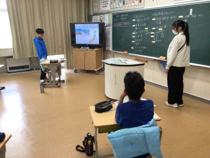 日本の気候について、資料をもとに考えました。日本は場所によって気候が違うことを学びました。