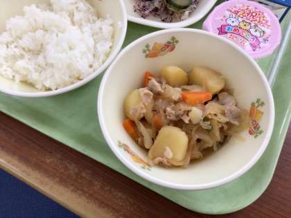 今日は長崎県産のメークインを使った肉じゃがです。メークインはねっとりとした食感で、煮崩れしにくく、煮物に向いています。